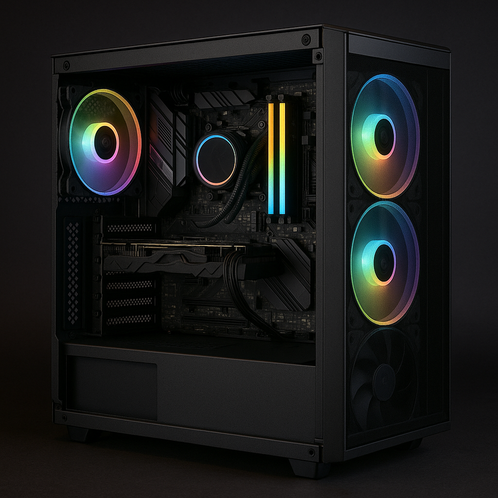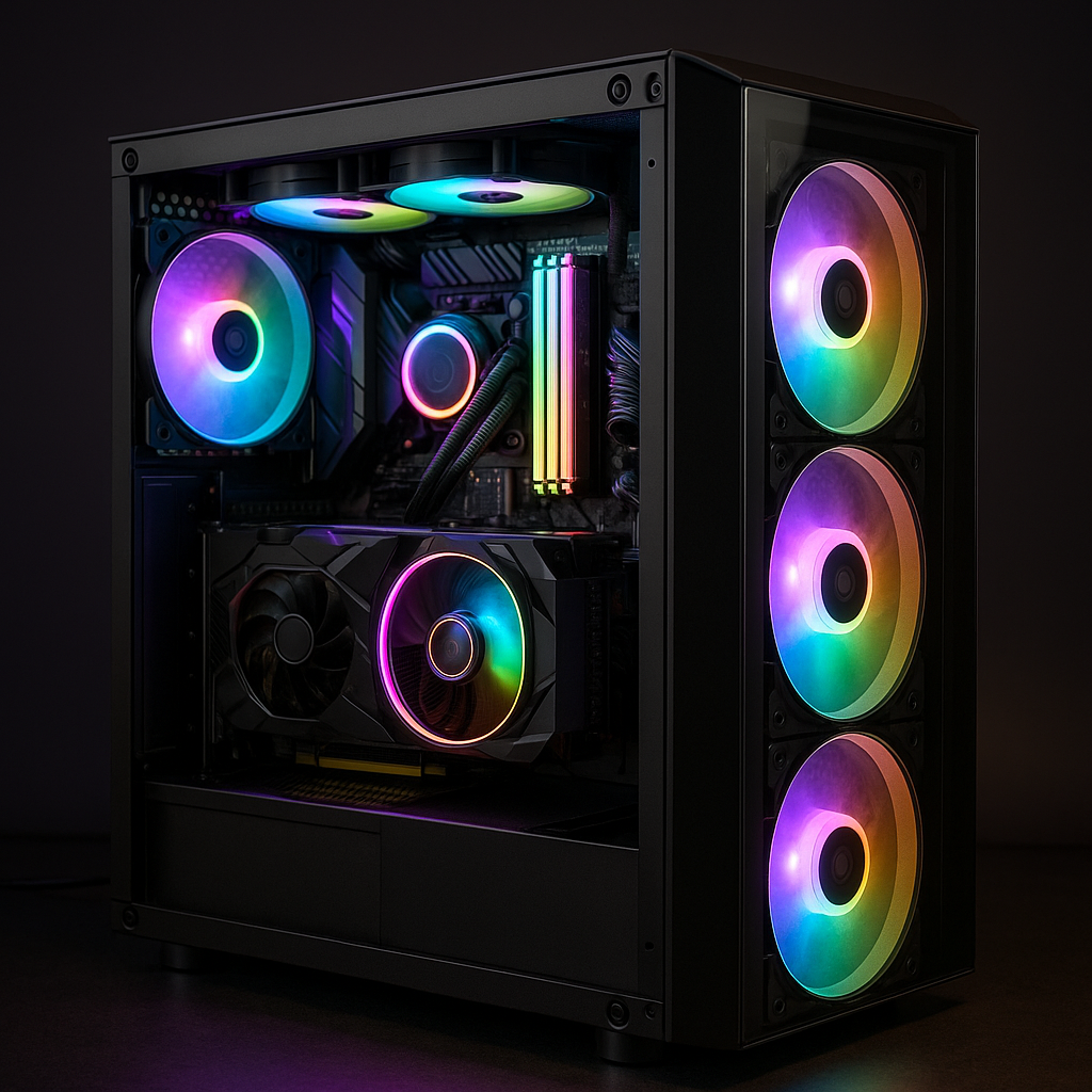 - Gabinete: Full-tower ou ultra-premium, com foco em fluxo de ar extremo, customização e um design que impressiona.